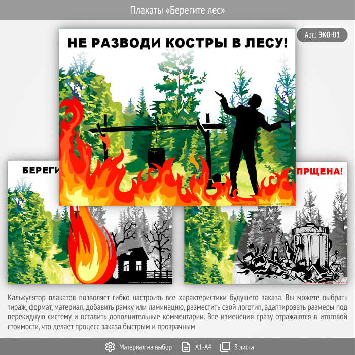 Плакаты «Берегите лес» (ЭКО-01, 3 листа) в Красноярске купить