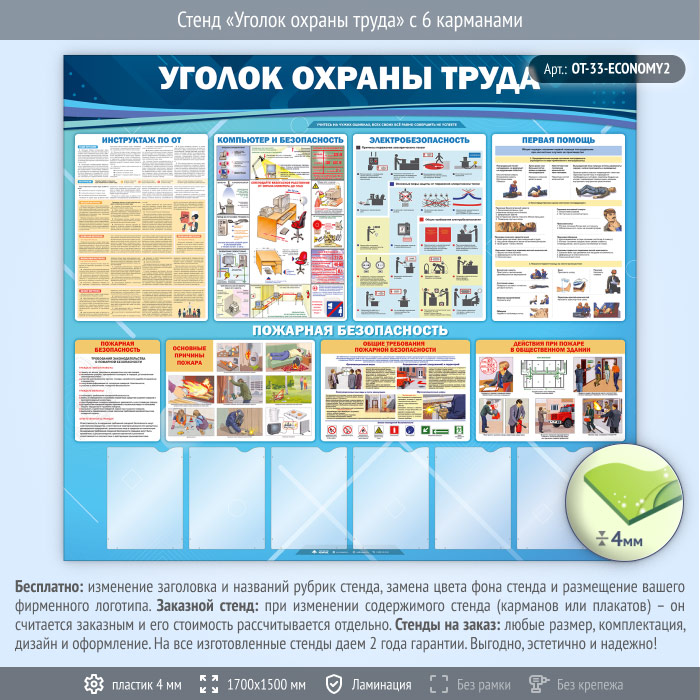 Стенд «Уголок охраны труда» с 6 карманами (OT-33-ECONOMY2) в Красноярске купить