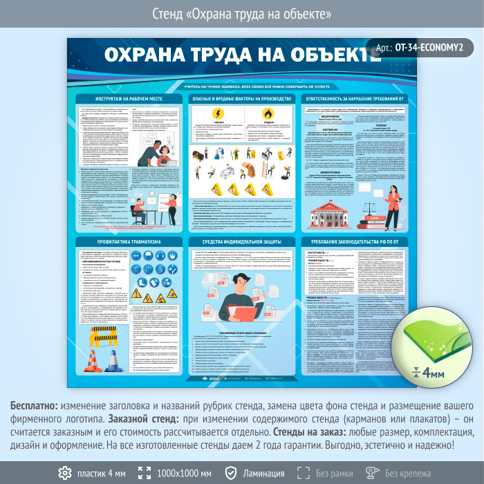 Стенд «Охрана труда на объекте» (OT-34-ECONOMY2) в Красноярске купить