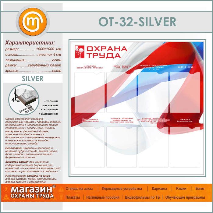 Стенд «Охрана труда» с 8 карманами (OT-32-SILVER) в Красноярске купить