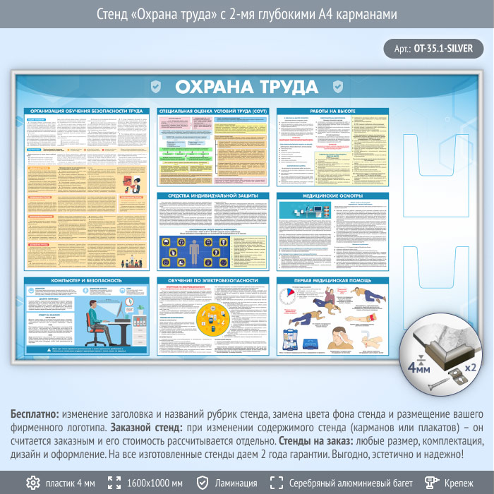 Стенд «Охрана труда» с 2-мя глубокими А4 карманами (OT-35.1-SILVER) в Красноярске купить