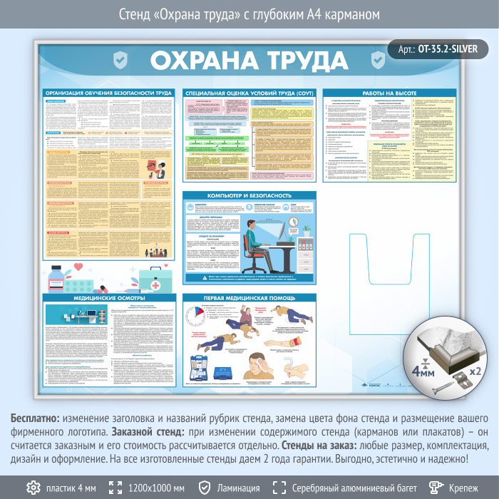 Стенд «Охрана труда» с глубоким А4 карманом (OT-35.2-SILVER) в Красноярске купить