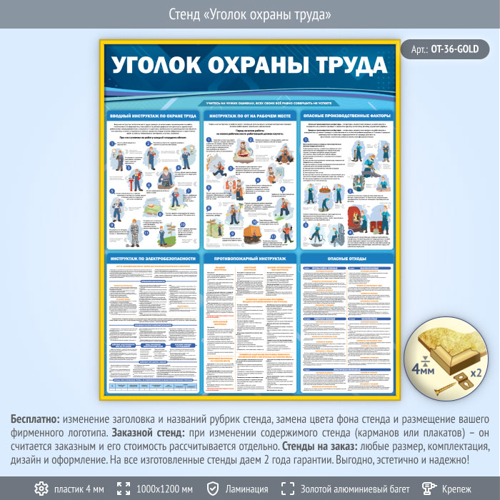 Стенд «Уголок охраны труда» (OT-36-GOLD) в Красноярске купить