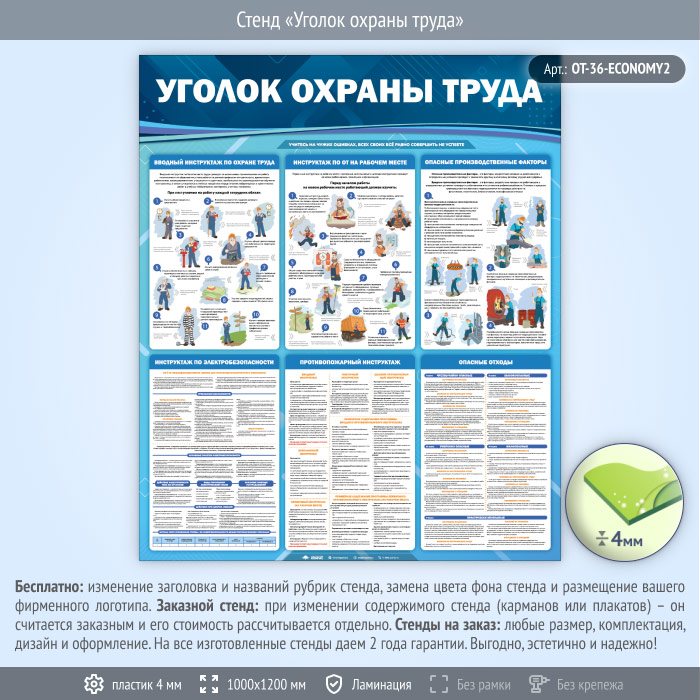 Стенд «Уголок охраны труда» (OT-36-ECONOMY2) в Красноярске купить