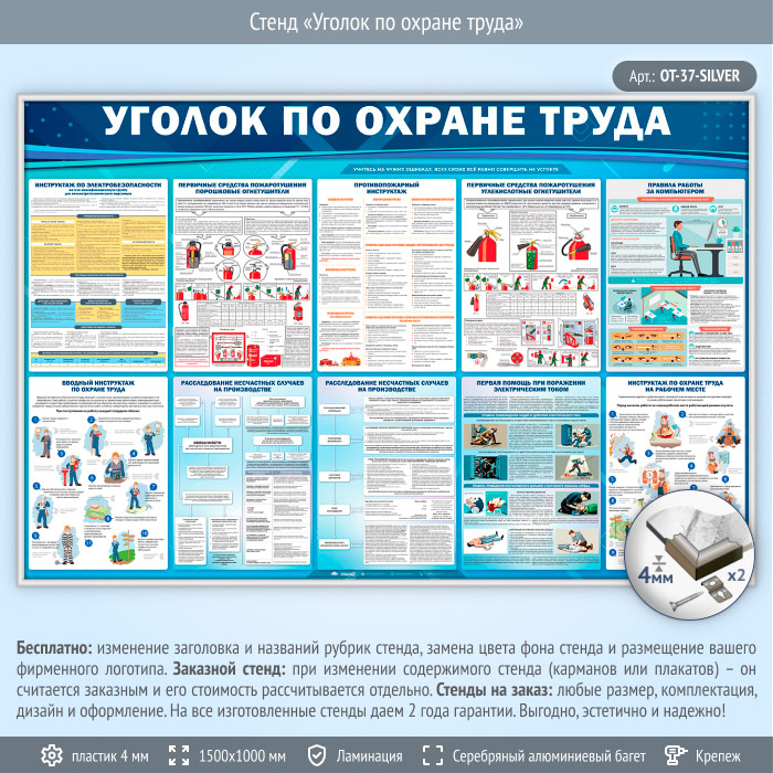 Стенд «Уголок по охране труда» (OT-37-SILVER) в Красноярске купить