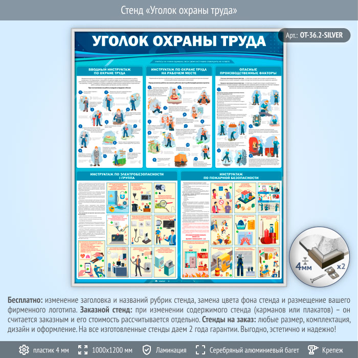 Стенд «Уголок охраны труда» (OT-36.2-SILVER) в Красноярске купить