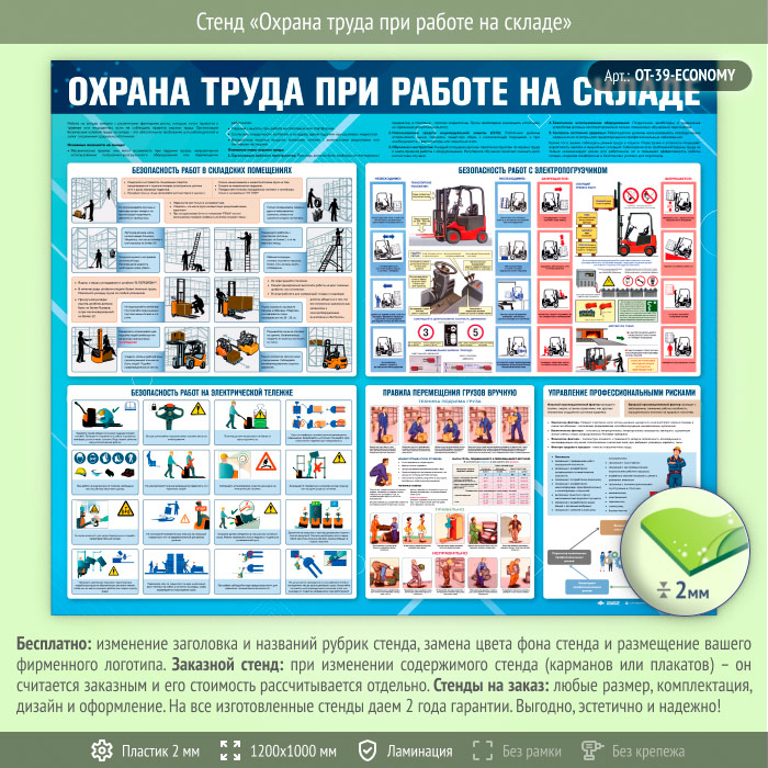 Стенд «Охрана труда при работе на складе» (OT-39-ECONOMY) в Красноярске купить