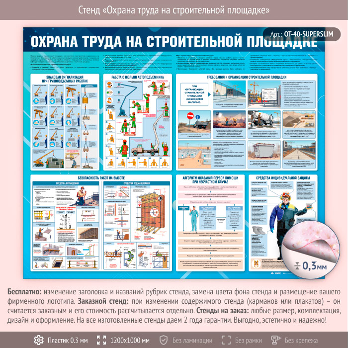 Стенд «Охрана труда на строительной площадке» (OT-40-SUPERSLIM) в Красноярске купить