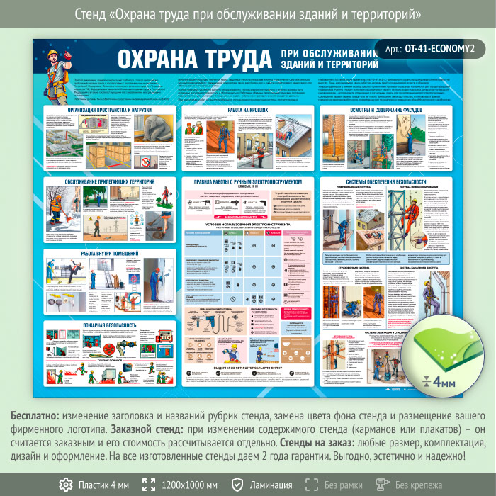 Стенд «Охрана труда при обслуживании зданий и территорий» (OT-41-ECONOMY2) в Красноярске купить
