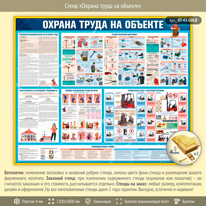 Стенд «Охрана труда на объекте» (OT-43-GOLD) в Красноярске купить
