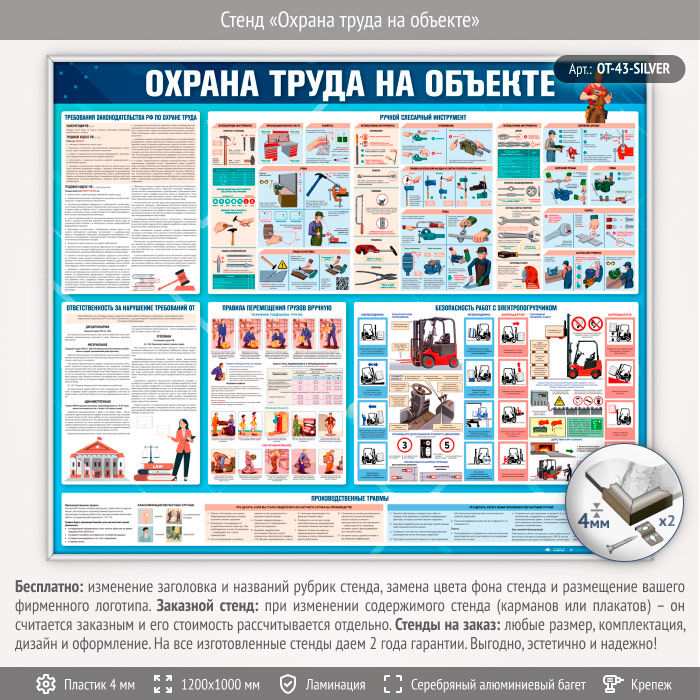 Стенд «Охрана труда на объекте» (OT-43-SILVER) в Красноярске купить