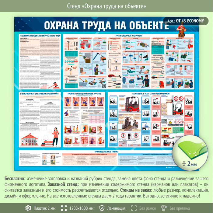 Стенд «Охрана труда на объекте» (OT-43-ECONOMY) в Красноярске купить