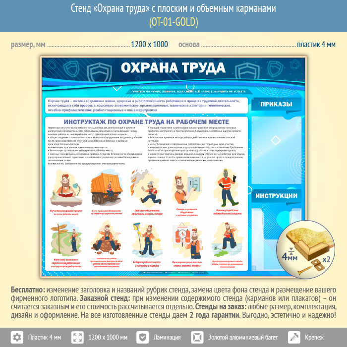 Стенд «Охрана труда» с плоским и объемным карманами (OT-01-GOLD) в Красноярске купить