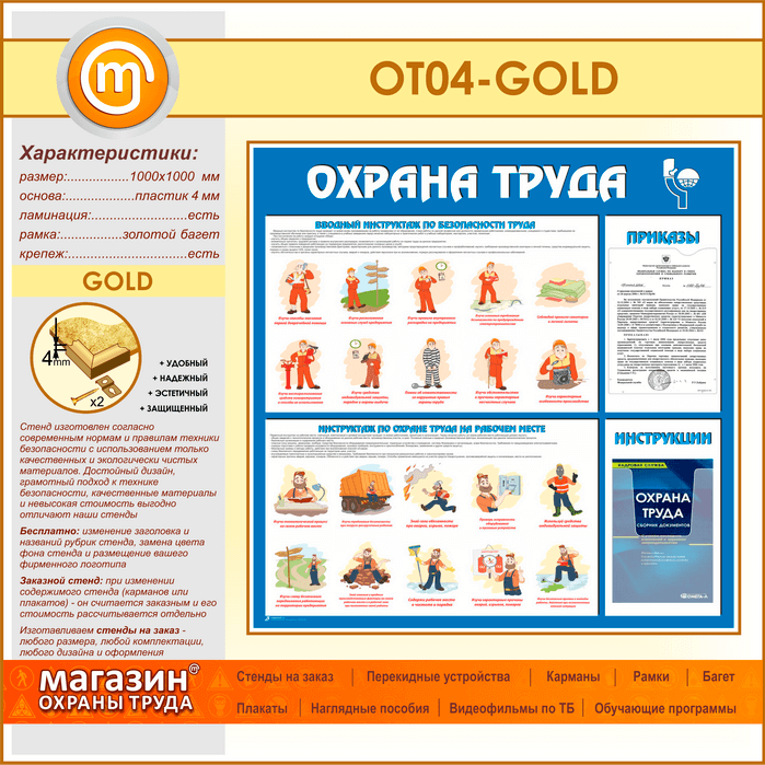 Стенд «Охрана труда» с плоским и объемным карманами (OT-04-GOLD) в Красноярске купить