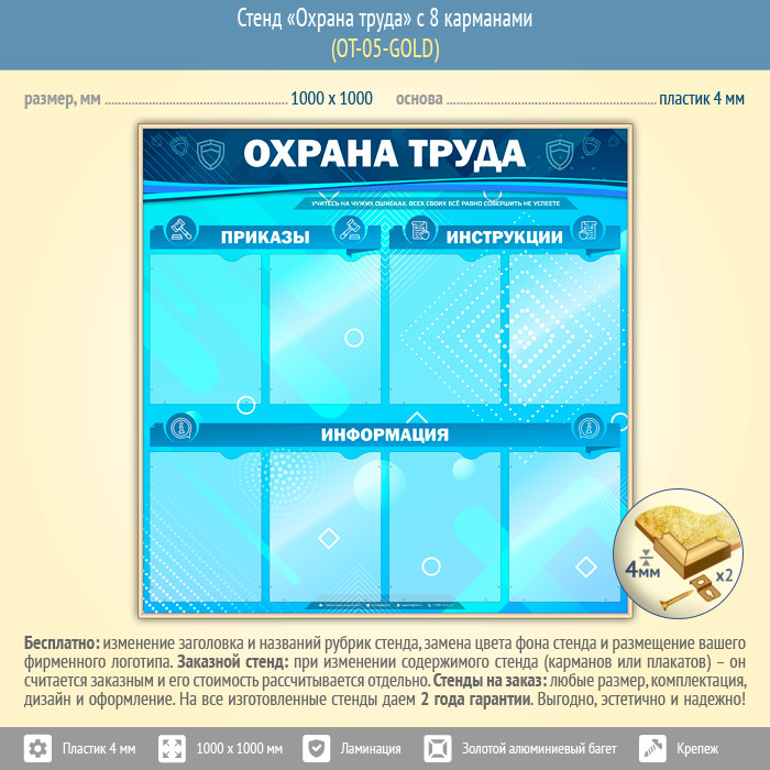 Стенд «Охрана труда» с 8 карманами (OT-05-GOLD) в Красноярске купить