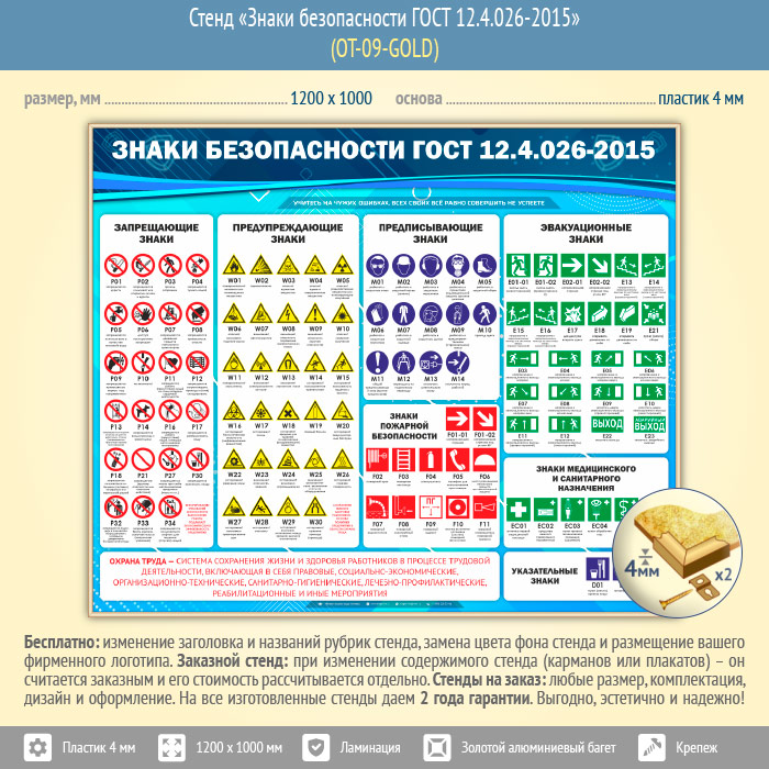 Стенд «Знаки безопасности ГОСТ 12.4.026-2015» (OT-09-GOLD) в Красноярске купить