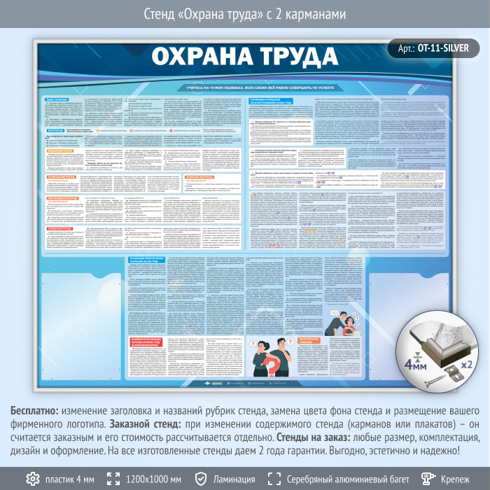 Стенд «Охрана труда» с 2 карманами (OT-11-SILVER) в Красноярске купить