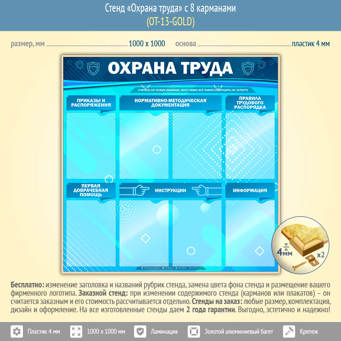 Стенд «Охрана труда» с 8 карманами (OT-13-GOLD) в Красноярске купить
