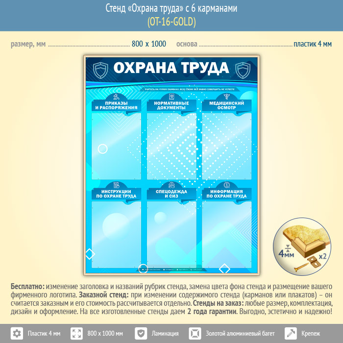 Стенд «Охрана труда» с 6 карманами (OT-16-GOLD) в Красноярске купить