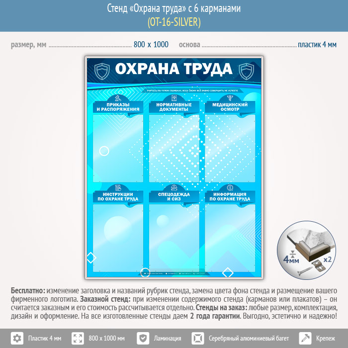 Стенд «Охрана труда» с 6 карманами (OT-16-SILVER) в Красноярске купить