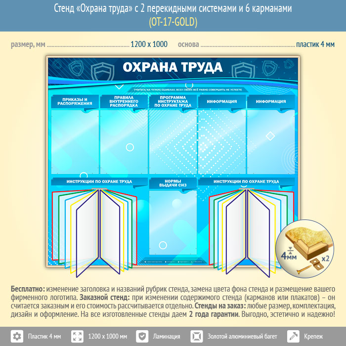 Стенд «Охрана труда» с 2 перекидными системами и 6 карманами (OT-17-GOLD) в Красноярске купить