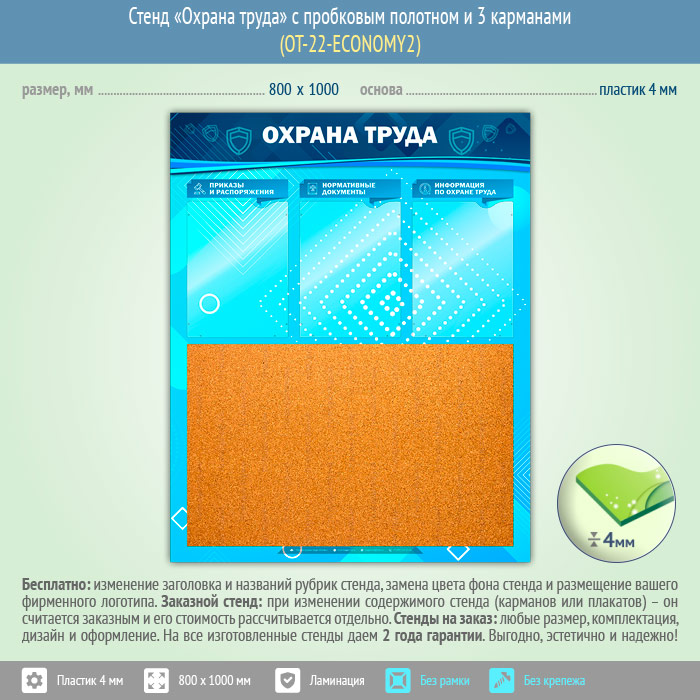 Стенд «Охрана труда» с пробковым полотном и 3 карманами (OT-22-ECONOMY2) в Красноярске купить