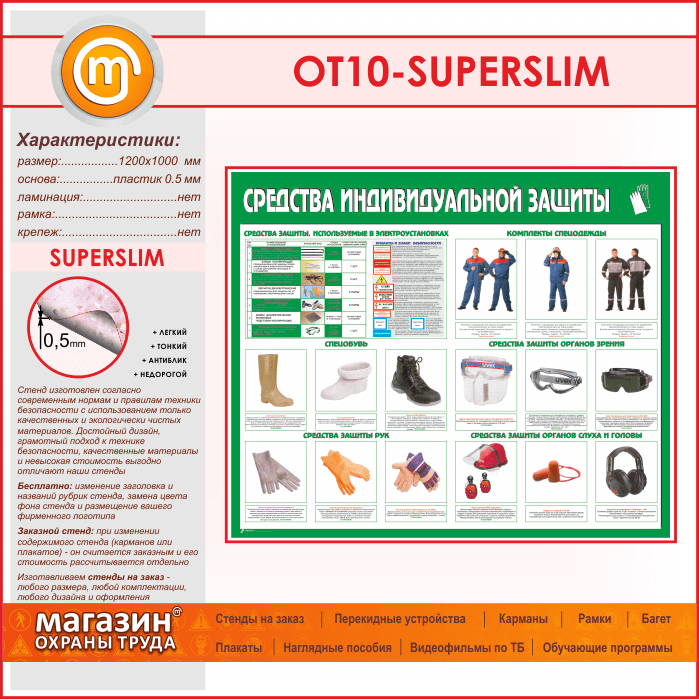 Стенд «Средства индивидуальной защиты» (OT-10-SUPERSLIM) в Красноярске купить