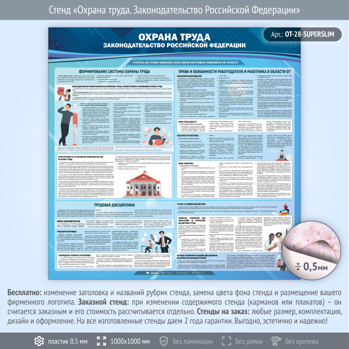Стенд «Охрана труда. Законодательство Российской Федерации» (OT-28-SUPERSLIM) в Красноярске купить