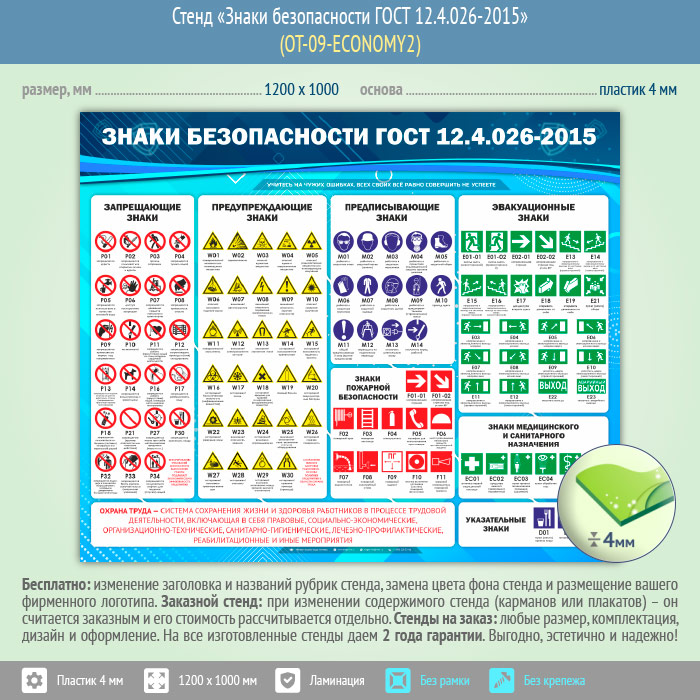 Стенд «Знаки безопасности ГОСТ 12.4.026-2015» (OT-09-ECONOMY2) в Красноярске купить
