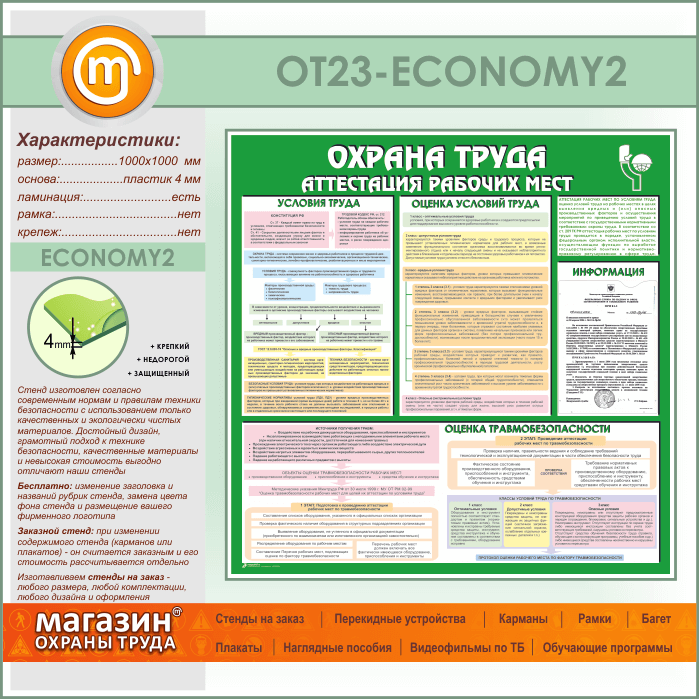 Стенд «Охрана труда. Аттестация рабочих мест» с карманом (OT-23-ECONOMY2) в Красноярске купить