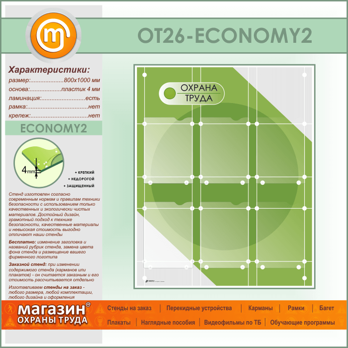 Стенд «Охрана труда» с 6 плоскими карманами (OT-26-ECONOMY2) в Красноярске купить