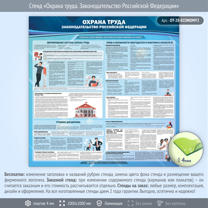 Стенд «Охрана труда. Законодательство Российской Федерации» (OT-28-ECONOMY2) в Красноярске купить