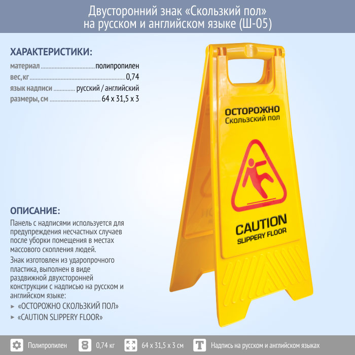 Знак «Скользкий пол» на русском и английском языке (Ш-05) в Красноярске купить