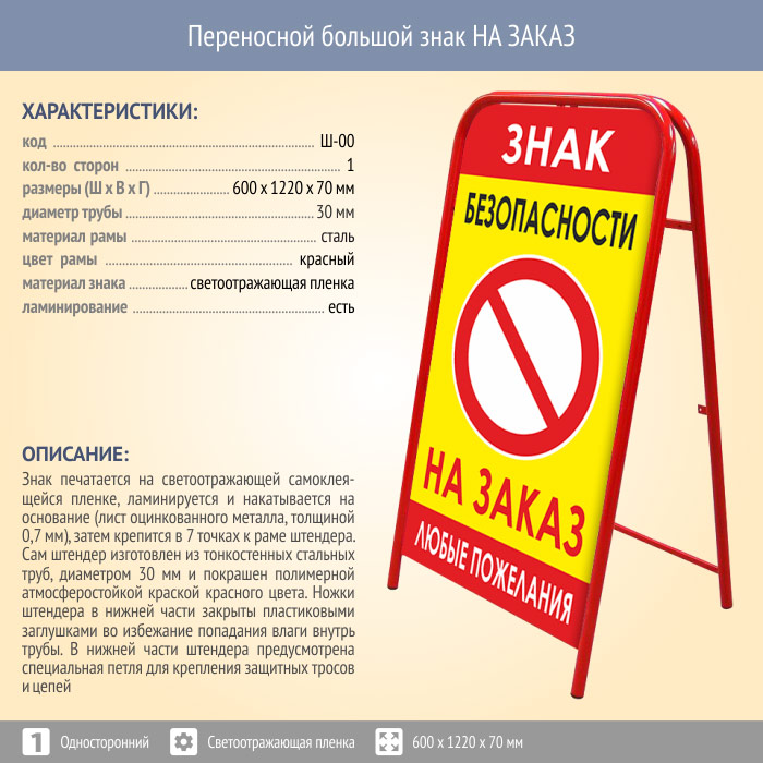 Переносной большой знак НА ЗАКАЗ (односторонний, светоотражающая пленка) в Красноярске купить