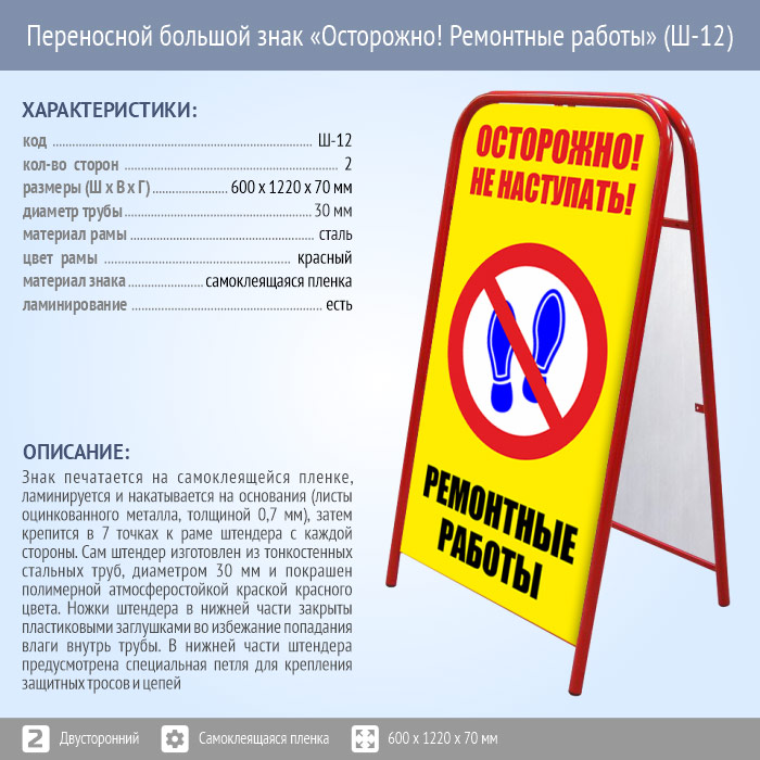 Переносной большой знак «Осторожно! Ремонтные работы» (Ш-12, двусторонний, самоклеящаяся пленка) в Красноярске купить