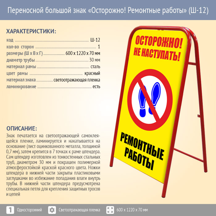Переносной большой знак «Осторожно! Ремонтные работы» (Ш-12, односторонний, светоотражающая пленка) в Красноярске купить