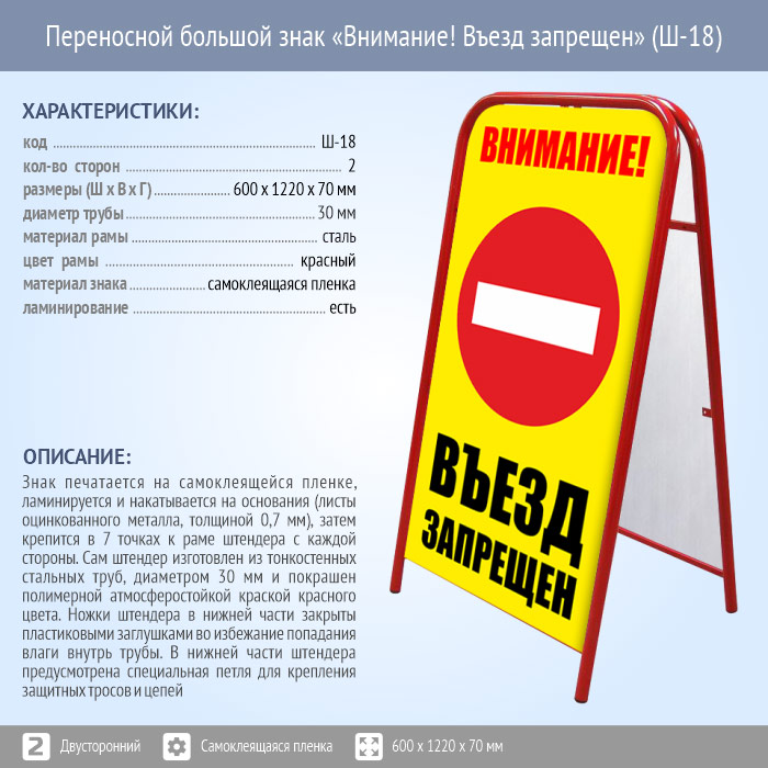 Переносной большой знак «Внимание! Въезд запрещен» (Ш-18, двусторонний, самоклеящаяся пленка) в Красноярске купить
