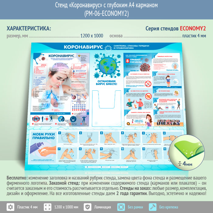 Стенд «Коронавирус» с глубоким А4 карманом (PM-06-ECONOMY2) в Красноярске купить