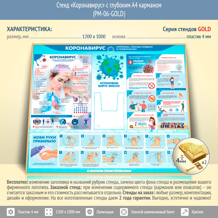 Стенд «Коронавирус» с глубоким А4 карманом (PM-06-GOLD) в Красноярске купить