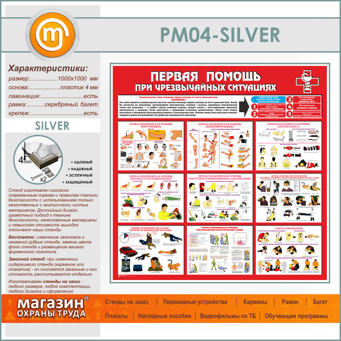 Стенд «Первая помощь при чрезвычайных ситуациях» (PM-04-SILVER) в Красноярске купить