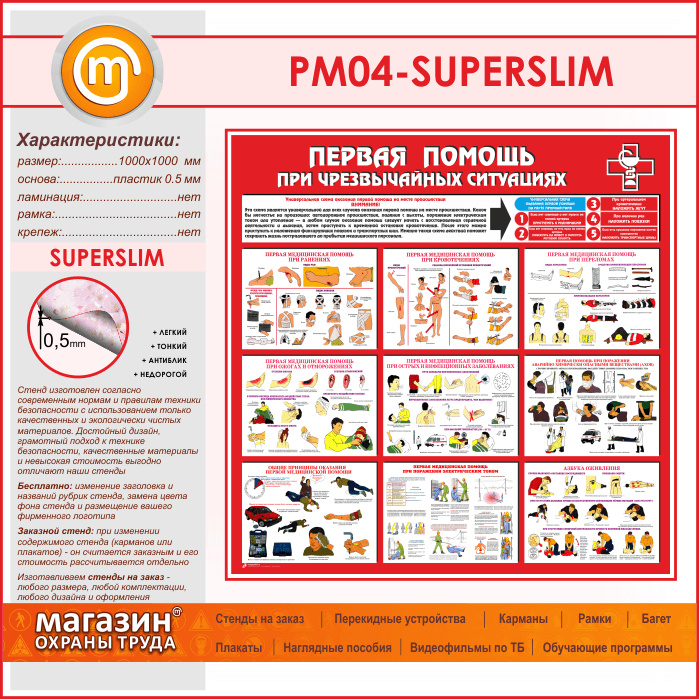 Стенд «Первая помощь при чрезвычайных ситуациях» (PM-04-SUPERSLIM) в Красноярске купить