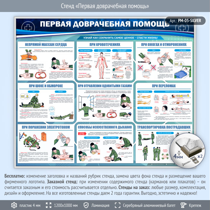 Стенд «Первая доврачебная помощь» (PM-05-SILVER) в Красноярске купить