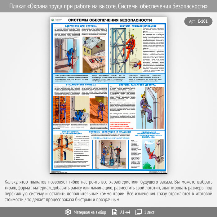 Плакат «Охрана труда при работе на высоте. Системы обеспечения безопасности» (С-101, 1 листа)