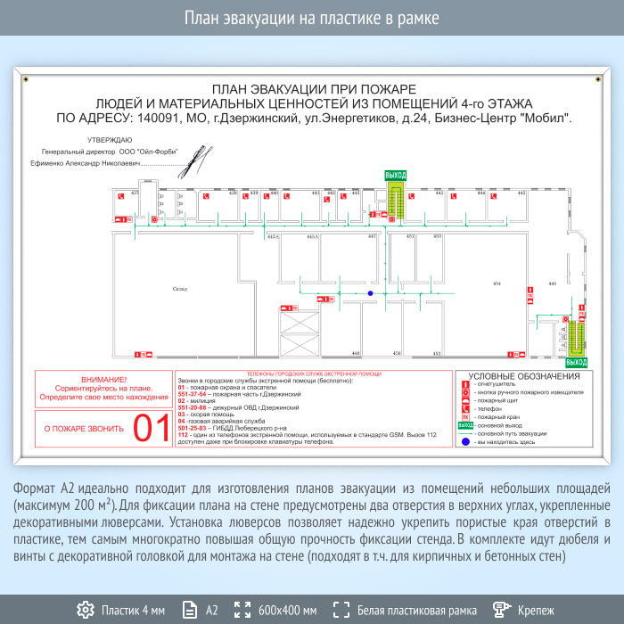 План эвакуации без фотолюминесценции (А2, ПВХ 4 мм, пластиковая рамка) в Красноярске купить