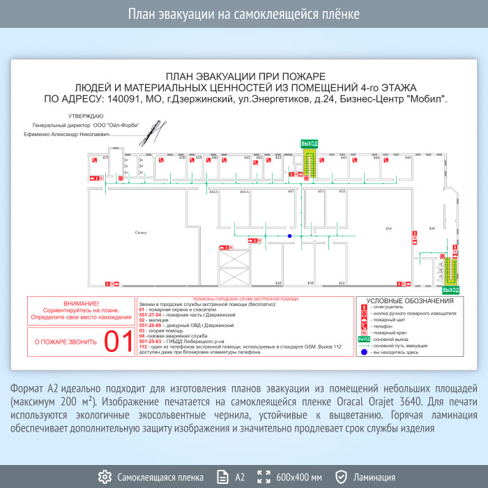 План эвакуации без фотолюминесценции (А2, самоклеящаяся плёнка) в Красноярске купить