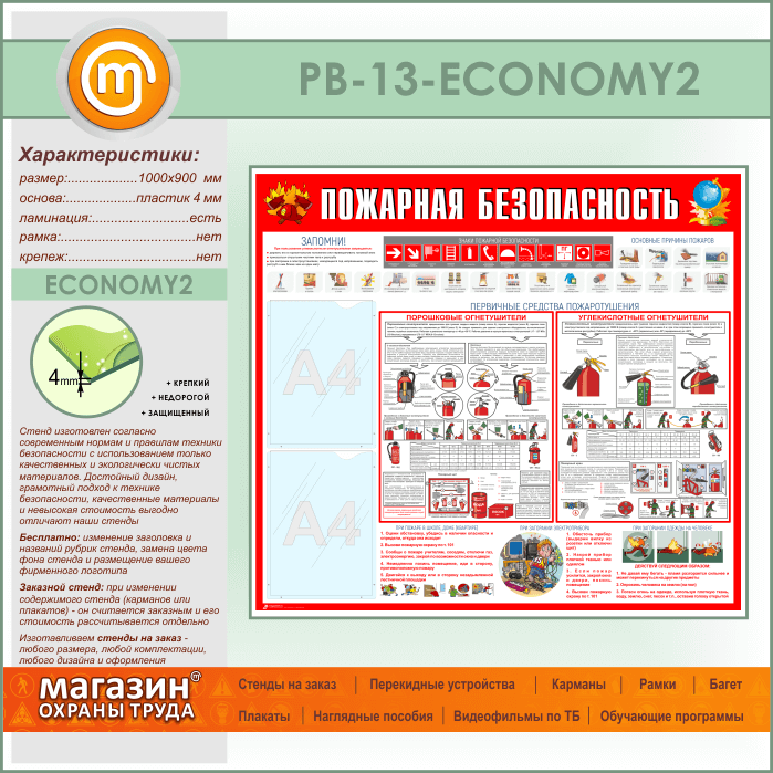 Стенд «Пожарная безопасность» с 2 карманами (PB-13-ECONOMY2) в Красноярске купить