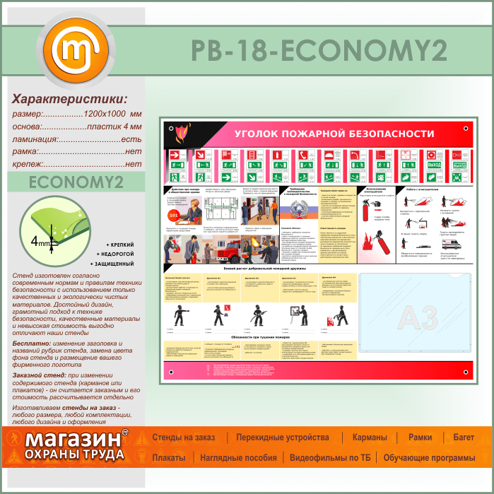 Стенд «Уголок пожарной безопасности» с карманом А3 формата (PB-18-ECONOMY2) в Красноярске купить