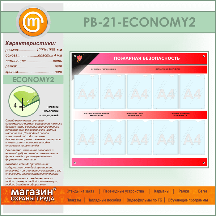 Стенд «Пожарная безопасность» с 10 карманами (PB-21-ECONOMY2) в Красноярске купить