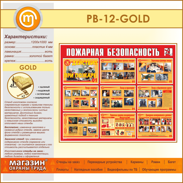 Стенд «Пожарная безопасность. Действия при пожаре» (PB-12-GOLD) в Красноярске купить