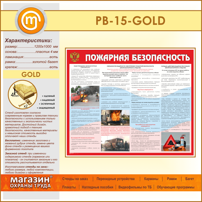 Стенд «Пожарная безопасность на автотранспорте» (PB-15-GOLD) в Красноярске купить